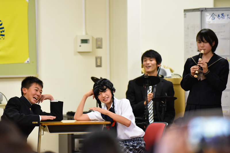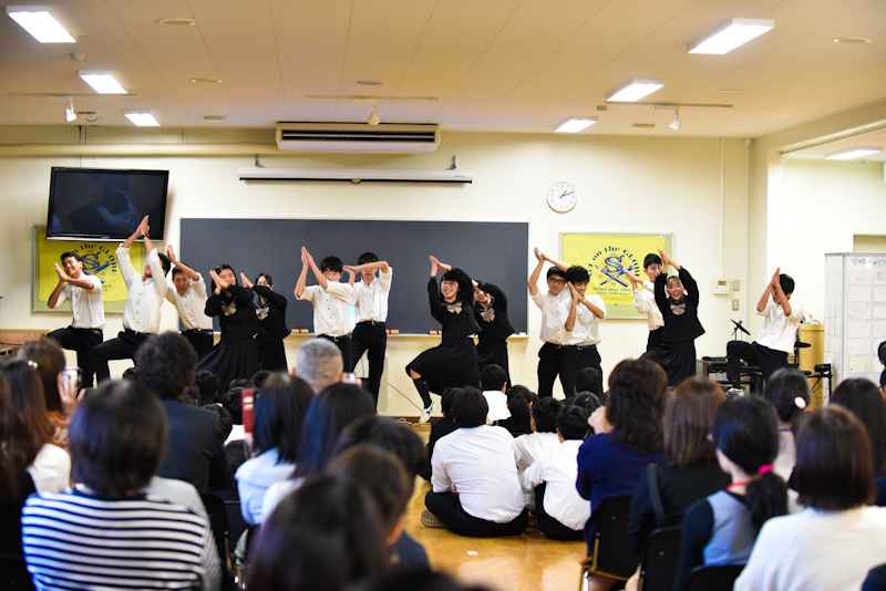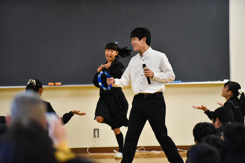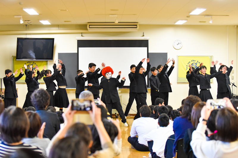 武陽祭の後夜祭をテーマに、司会を織り交ぜながらダンスの発表を行っていました。本格的なダンスや、コミカルな動きをで発表に挑戦していました。