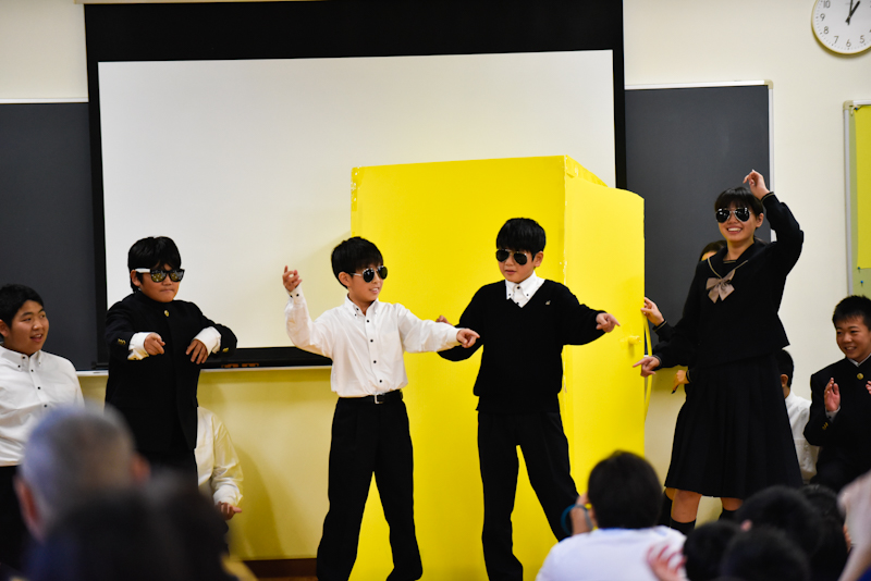 星野源の『SUN』のPVを合奏とダンスで再現しました。工夫を凝らしてクラスで一致団結し、頑張っていました。