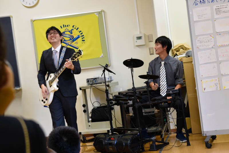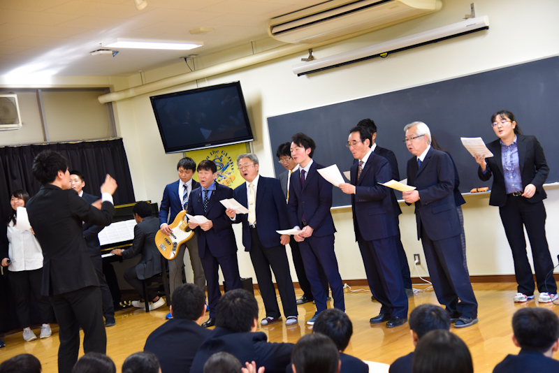 今年は合唱だけでなくバンド演奏も行いました。数少ない練習時間でしたが、教員も一丸となり「空も飛べるはず」を歌いました。