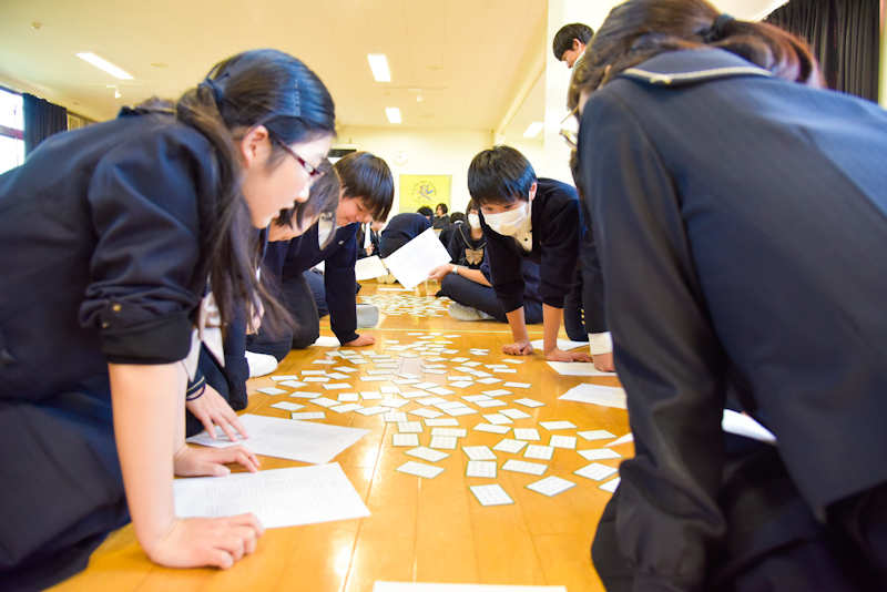 本校の《百人一首大会》は、中学1年生から3年生を対象に百人一首に触れ古典文学の素養を養うことをねらいとし、毎年開催されています。