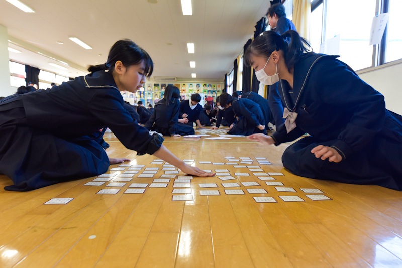 試験において特に優秀だった生徒は、百人一首の実力を競うべく、1対1形式での試合を行いました。