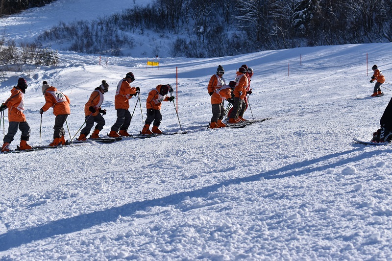 4月のオリエンテーション合宿や日々の生活で学んだ、他人を思いやる気持ち、挨拶、施設利用のマナーなどをしっかりと徹底し、「安全にスキーをする技術」を身に付けることを目的としています。