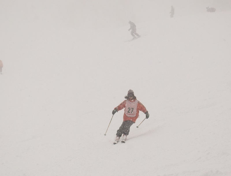 中級者班は、昨日と同じコースで、より早く滑るためのテクニックを教わりました。