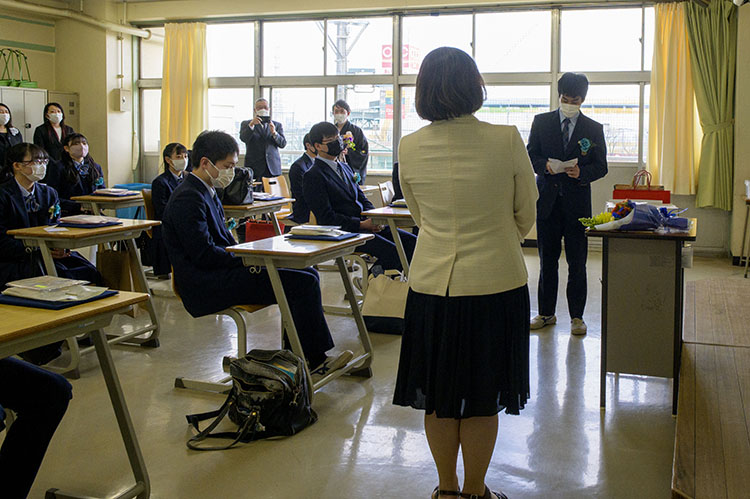 終了後、最後の学活となり、お世話になった担任の先生との学校生活での最後の挨拶をしていました。各クラスでクラスのサプライズや感謝の手紙の朗読、映像の放映など涙ながらに見ている姿がありました。
