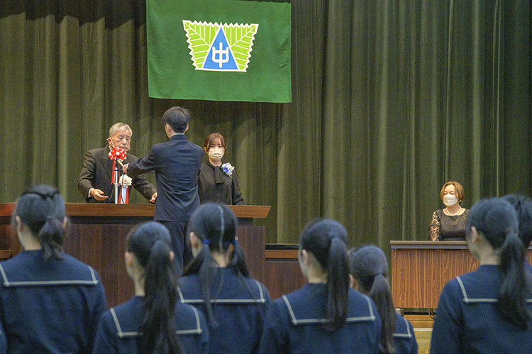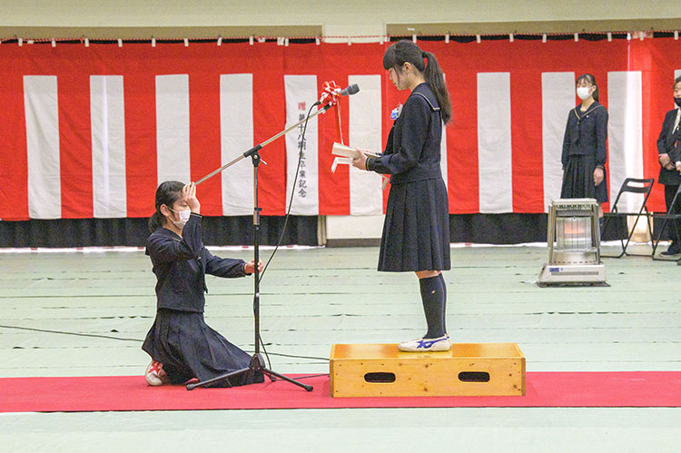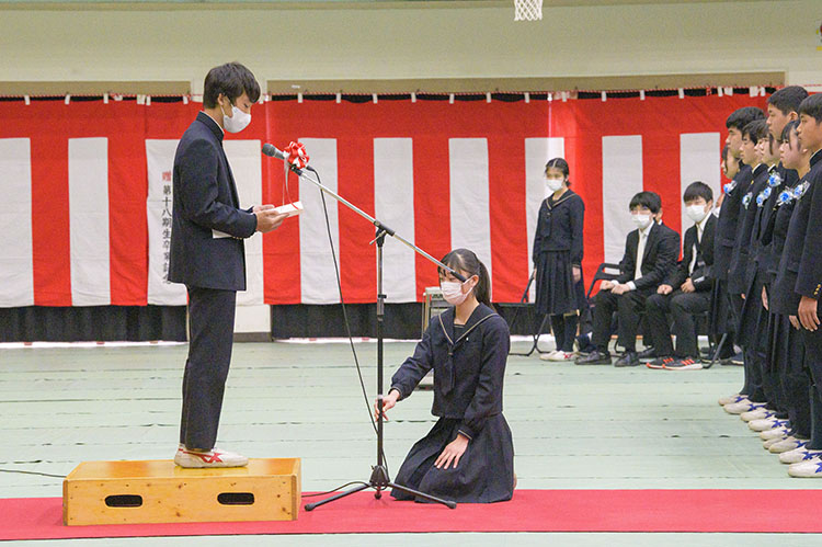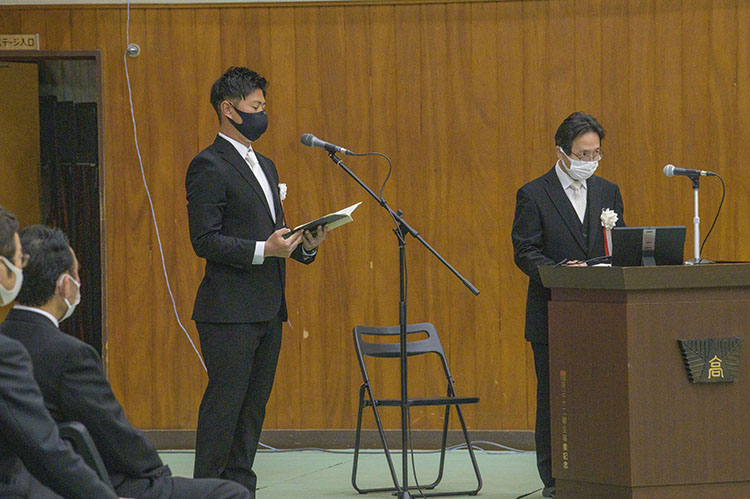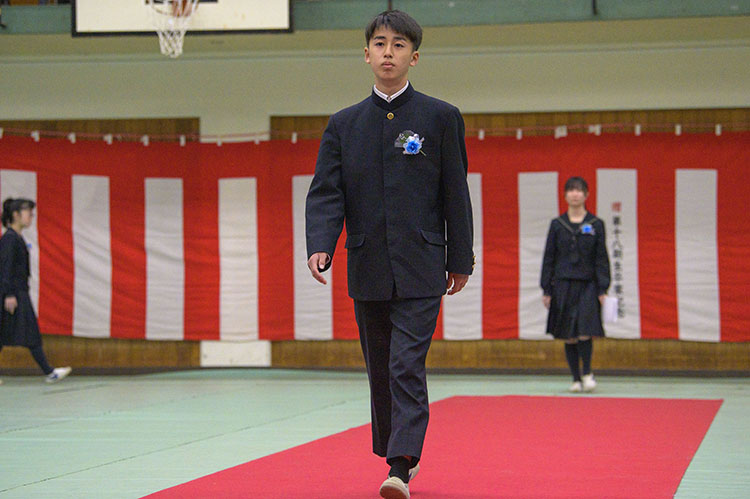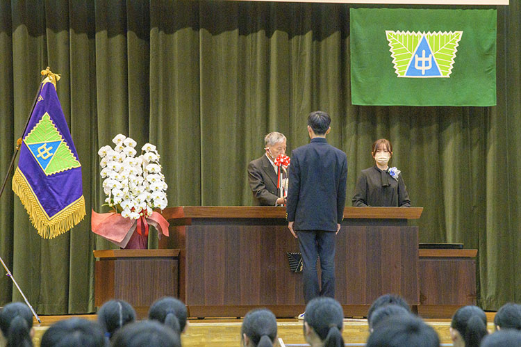 3月17日(金)、本校第9回卒業証書授与式が実施されました。9期生はコロナ禍で入学した生徒で、イベントや行事が縮小・中止になることが多くありました。その中でも、一昨年度に実施された青秋祭では各クラスが恋愛ドラマ・ホラー映画を作成し、たくさんの人に笑いを与えました。