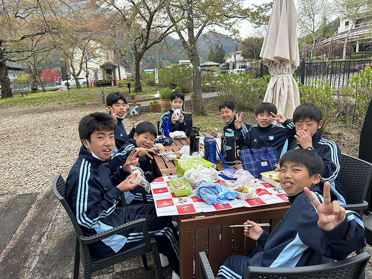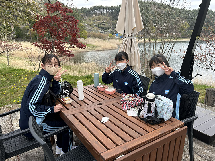 現地では綺麗な湖を見ながら昼食をとることができました。とても楽しそうに食べている姿が見られました。