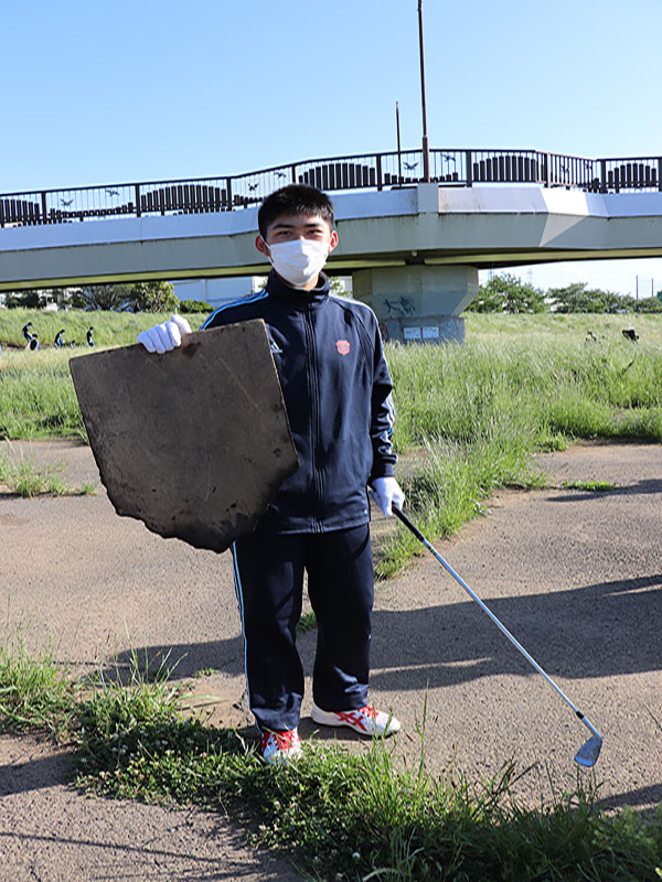 細かいゴミから中にはゴルフクラブを拾っている生徒もいました。