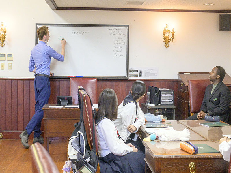 Travel Abroadでは、空港の保安官になることで、持ち物検査を実際に動画を通して実施をしていました。聞いたことある英語が中心かつわかりやすい質問でとても積極的に取り組んでいる姿が見受けられました。また、1対1で全員が必ず先生方とコミュニケーションをとっているため一生懸命な姿も見受けられました。