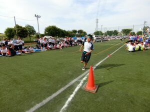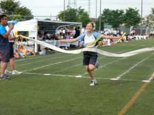 午後の1種目目は男子100メートルと女子80メートルです。たくさんの声援にこたえ、皆全速力で走り抜けました。