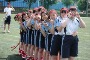 入学して2ヶ月が経過し学校生活に慣れてきた1年生は先輩達と同じ色の組になり一緒に勝利を目指します。