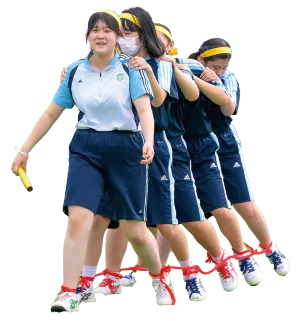中高合同で行われる体育祭は、競技への参加や応援を通して喜びや悔しさを共有し、生徒同士の絆が深まる大切な行事です。また、チームで戦略を練り、練習に取り組む中で、計画性や組織力も養うことができます。学年の垣根を超えた全クラス対抗の大縄跳びは、毎年一番の盛り上がりを見せる種目です。高校生の白熱した戦いぶり見ることも、生徒の楽しみになっているようです。