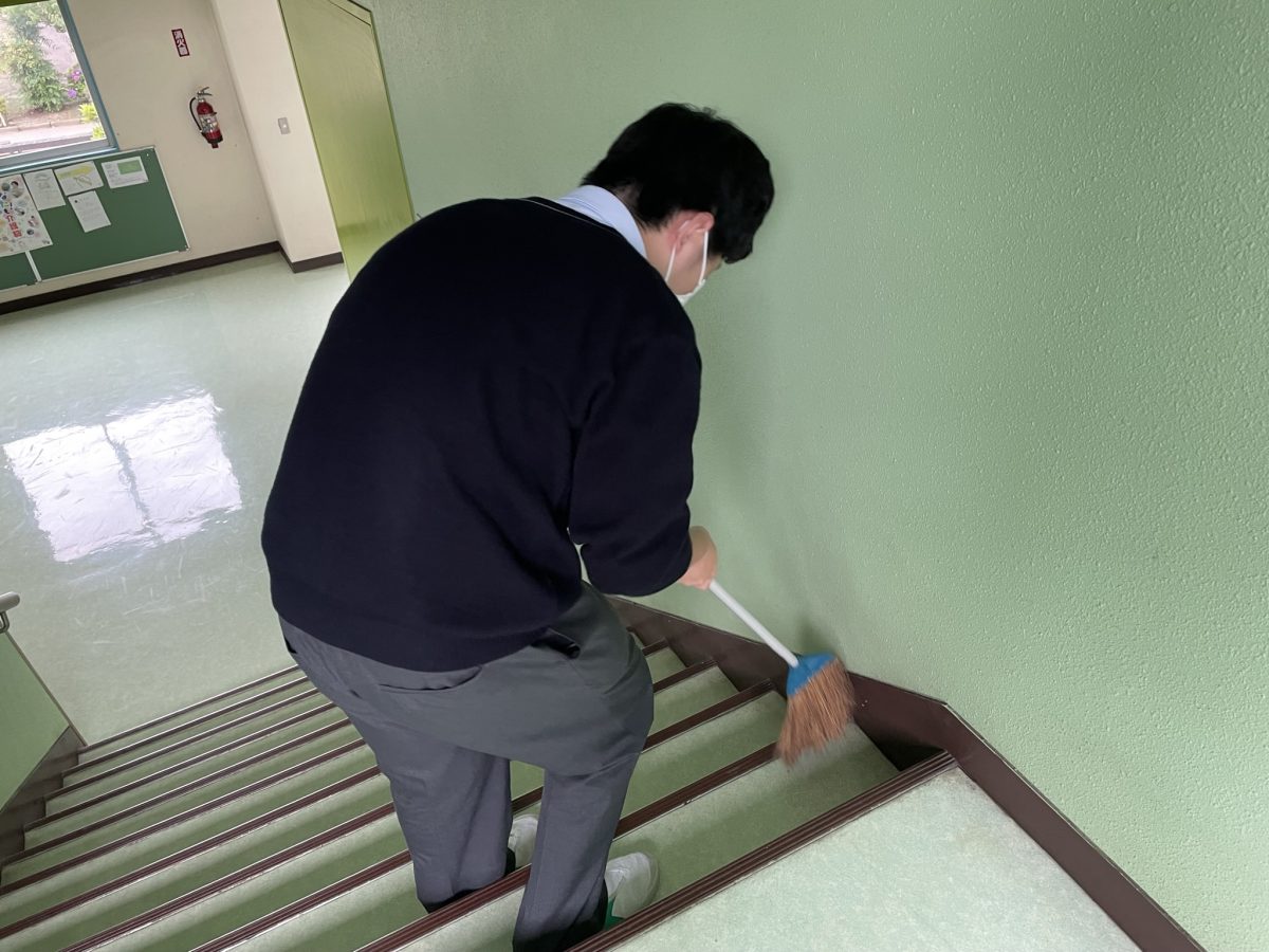 さて、6時間の授業(7時間の日もあります)が終わると当番の人には掃除があります。校舎に感謝しながら(早く部活に行きたいと思いながら)みんなしっかり掃除します。
